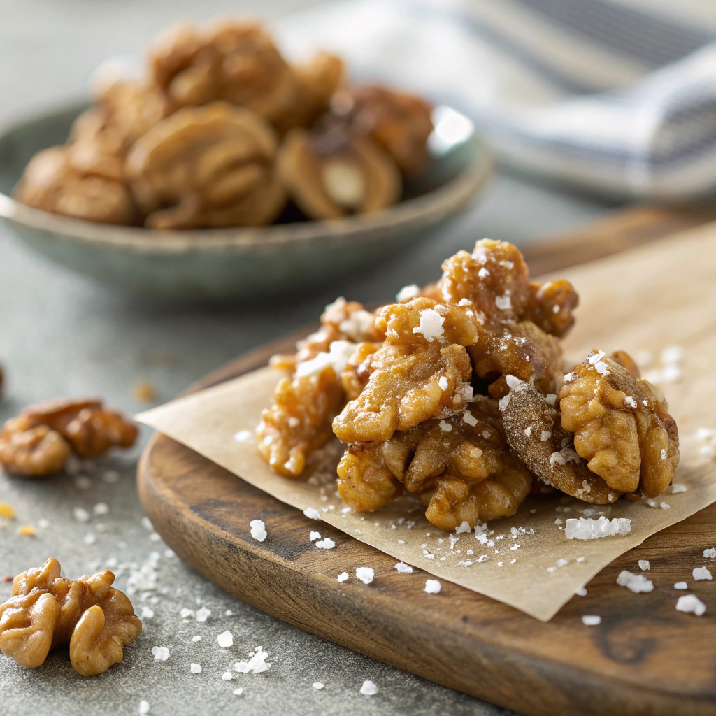 These caramel walnuts come together in just minutes and make the perfect sweet-and-salty snack, salad topping, or dessert garnish. They’re chewy, crisp, lightly sweet, and completely irresistible. With only five simple ingredients and a quick stovetop method, this recipe delivers candy-shop flavor without the fuss—ideal for last-minute entertaining or whenever cravings strike.