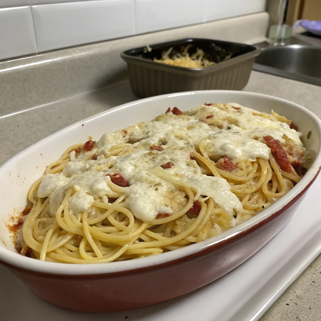 This baked cream cheese spaghetti is the ultimate cozy, family-friendly casserole. It blends tender pasta with a creamy, seasoned cheese mixture and a hearty meat sauce for a dinner that feels both comforting and effortless. The ingredients are simple pantry staples, making it perfect for busy weeknights or whenever you need a crowd-pleasing dish you can assemble ahead. Once baked, it becomes bubbly, rich, and irresistibly cheesy. Serve it as a standalone meal or pair it with a crisp salad and garlic bread.