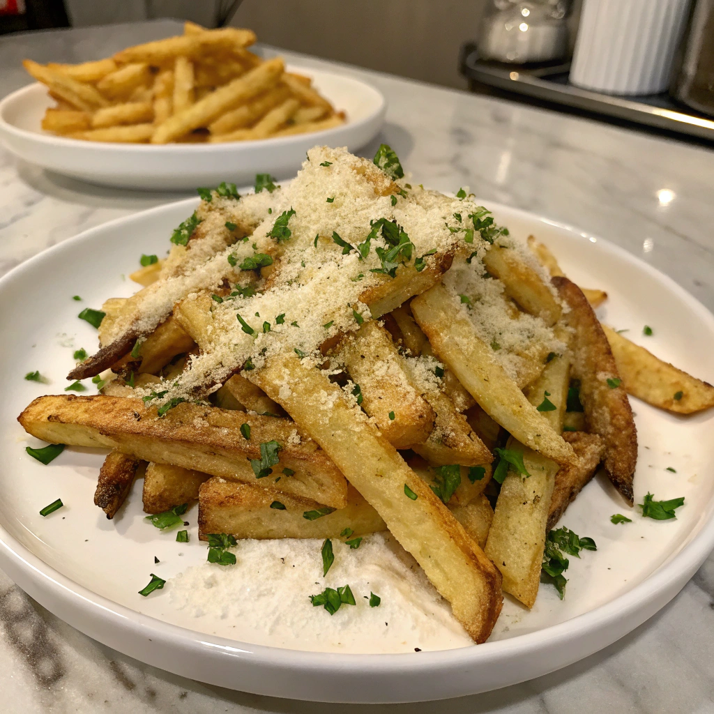 These Baked Garlic Parmesan Fries are crispy on the outside, fluffy inside, and loaded with savory garlic-herb flavor. Baking keeps them lighter than fried fries, but you still get that golden, crunchy texture with the right heat and spacing. The Parmesan melts into the hot fries for a salty, cheesy finish, and the parsley adds a fresh pop. They’re an easy side for burgers, chicken, sandwiches, or even as a snack with dipping sauce. Make a big batch—these disappear fast.