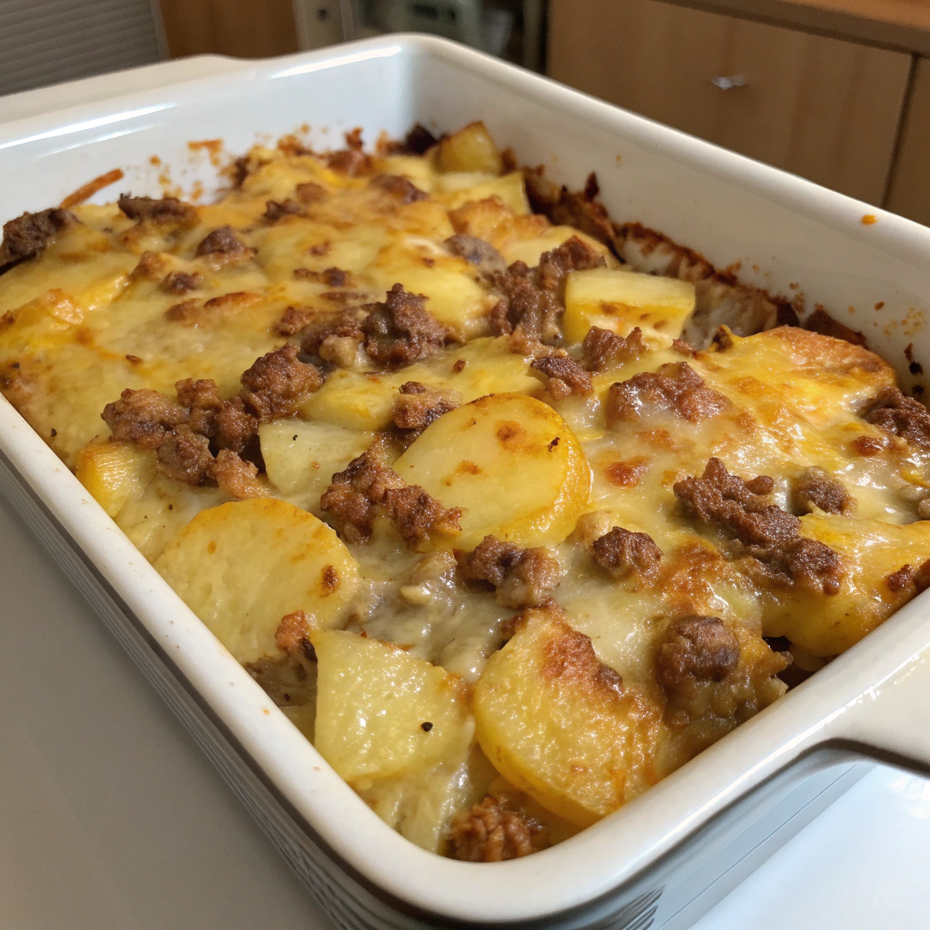 This cheesy hamburger potato casserole is classic comfort food that works for busy weeknights, holiday tables, or even a hearty brunch. Thinly sliced potatoes are layered with savory ground beef, onion, and plenty of melted cheddar cheese. A simple cheddar soup and milk mixture soaks into all the layers as it bakes, making everything creamy and flavorful. It’s easy to assemble ahead and pop in the oven when you’re ready, so it’s great for feeding a hungry crowd. Serve it with a simple green salad or steamed veggies to round out the meal.