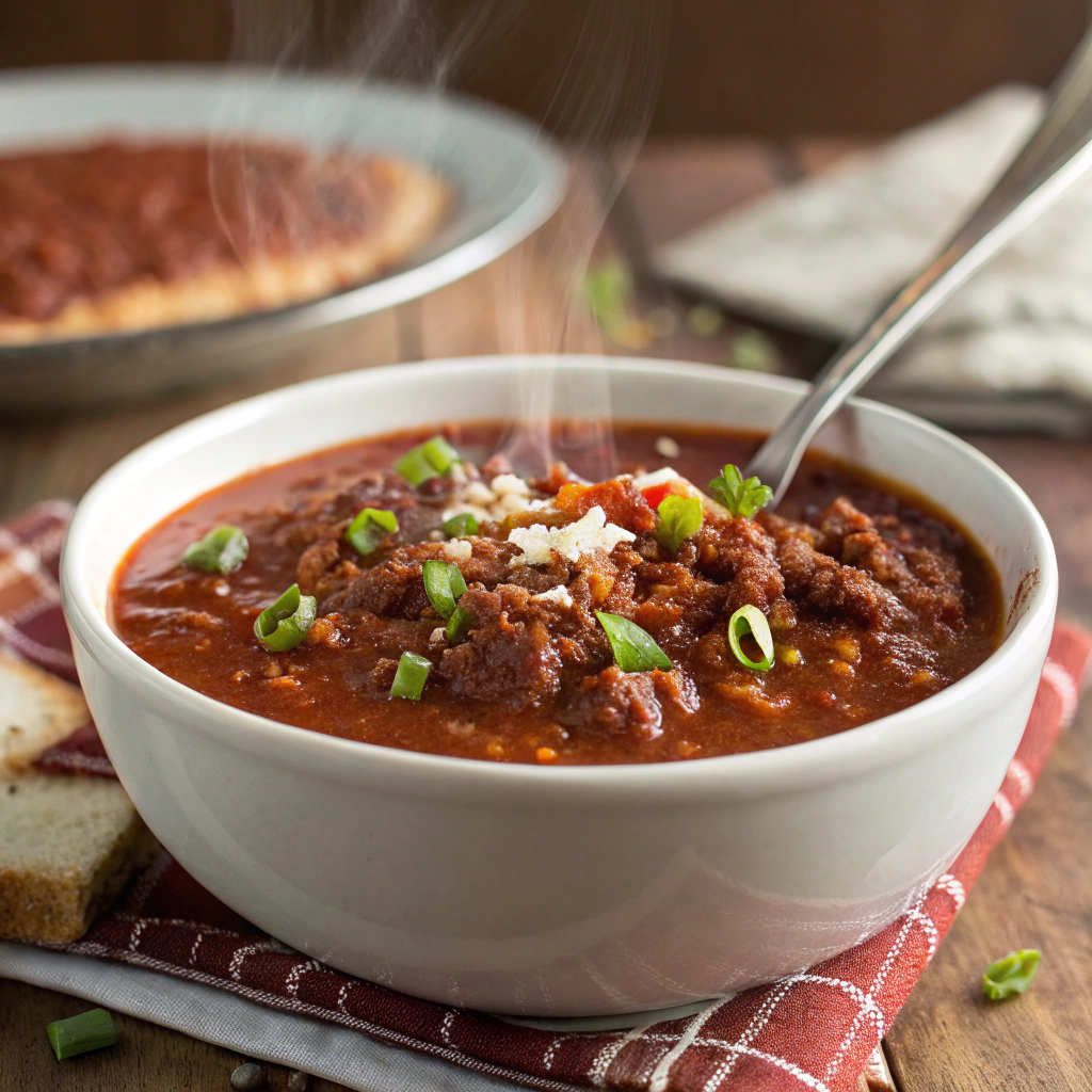 Chili Parlor Chili is a rich, deeply seasoned bowl of comfort inspired by classic diner-style chili—smooth, savory, and full of warm spice without being overly thick. It’s perfect for chilly nights, game days, or whenever you want a quick stovetop meal that still delivers big flavor. The surprising addition of cocoa powder adds depth and balance, giving this chili its signature old-school taste. Serve it with crackers, onions, cheese, or over hot dogs or fries for a true parlor feel.