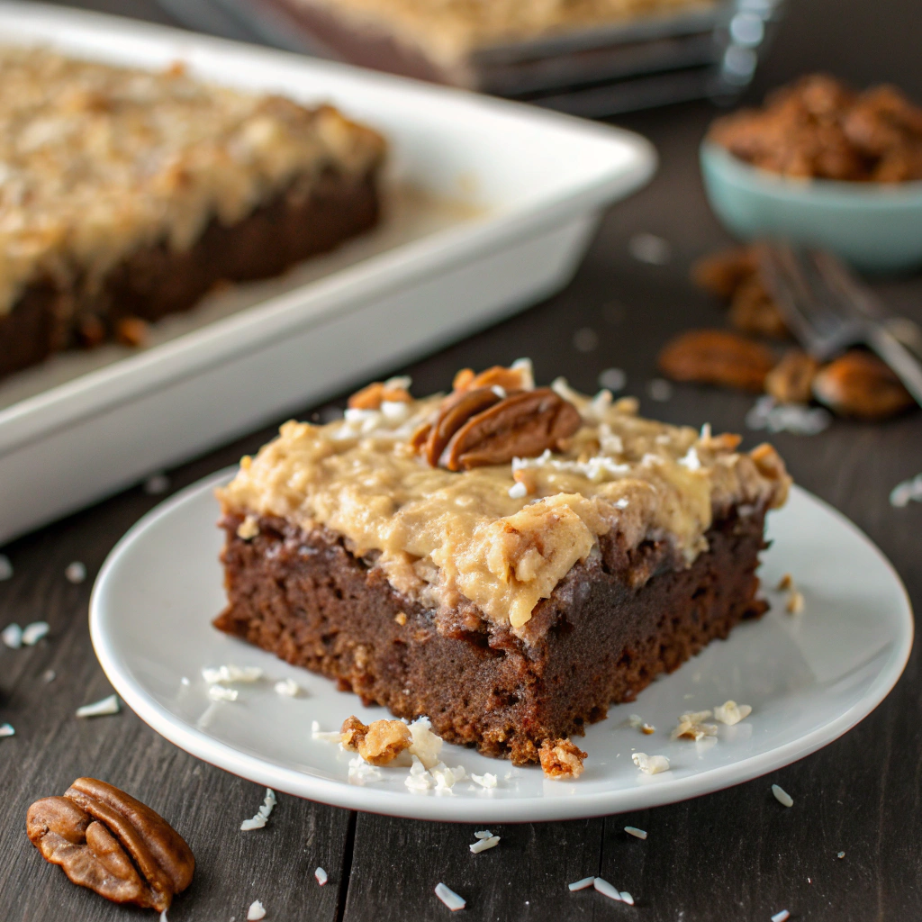 German Chocolate Sheet Cake is a rich, nostalgic dessert featuring tender chocolate cake topped with a decadent coconut-pecan frosting. Despite the name, this classic isn’t actually German—it’s named after Samuel German, the chocolatier who developed the baking chocolate used in the original recipe. This sheet cake version feeds a crowd, comes together easily, and is perfect for birthdays, potlucks, and family celebrations. Every slice offers moist chocolate crumb and a caramel-like topping that’s impossible to resist.