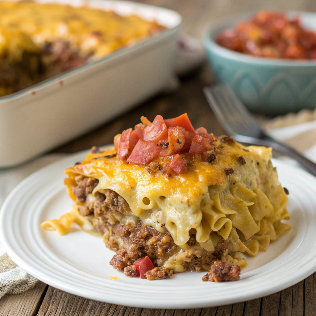 This Ground Beef Casserole is the kind of cozy, crowd-pleasing dish that fits perfectly into busy weeknights or make-ahead meal plans. It layers tender egg noodles with a creamy sour cream mixture and a rich, tomato-based beef sauce for a comforting, lasagna-style bake. The melted cheddar on top adds just the right amount of sharp, cheesy goodness. It’s simple to assemble, budget-friendly, and always a hit served with a salad or warm garlic bread.