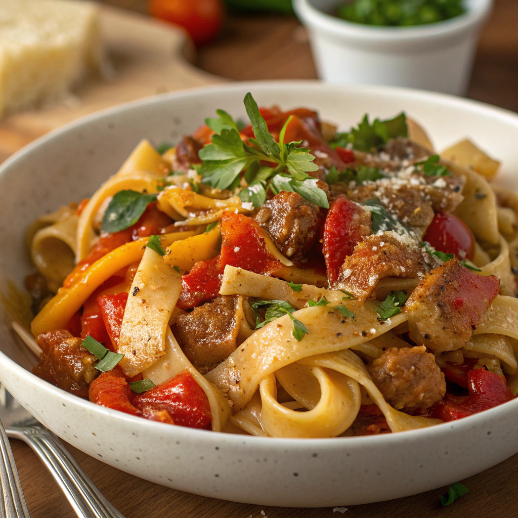 Italian drunken noodles are a hearty, flavor-packed pasta dish featuring tender egg noodles tossed with savory Italian sausage, tomatoes, peppers, garlic, and herbs. A splash of white cooking wine deepens the sauce and adds brightness, giving the dish a rich, rustic Italian taste. It comes together quickly in one pan, making it ideal for weeknight dinners or casual get-togethers. Comforting and satisfying, this recipe brings big flavor with minimal effort.