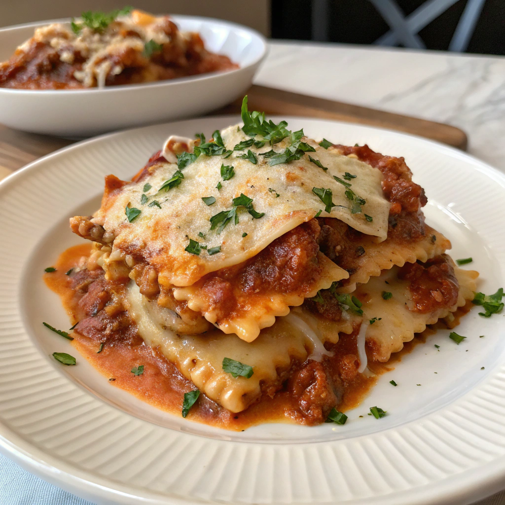 - Don’t thaw the ravioli—using them frozen helps the lasagna hold its structure.