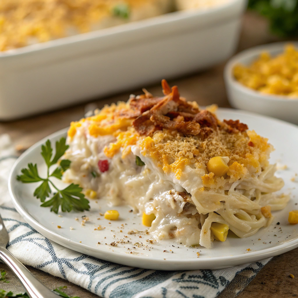 This Ultimate Chicken Casserole is the perfect blend of comforting flavors and textures—creamy, cheesy, and packed with tender chicken, crispy bacon, and sweet corn. It’s a family-friendly dish that’s quick and easy to make, and it’s guaranteed to satisfy even the pickiest eaters. Ideal for a weeknight dinner or when you need a hearty, no-fuss meal, this casserole is sure to become a staple in your recipe collection!